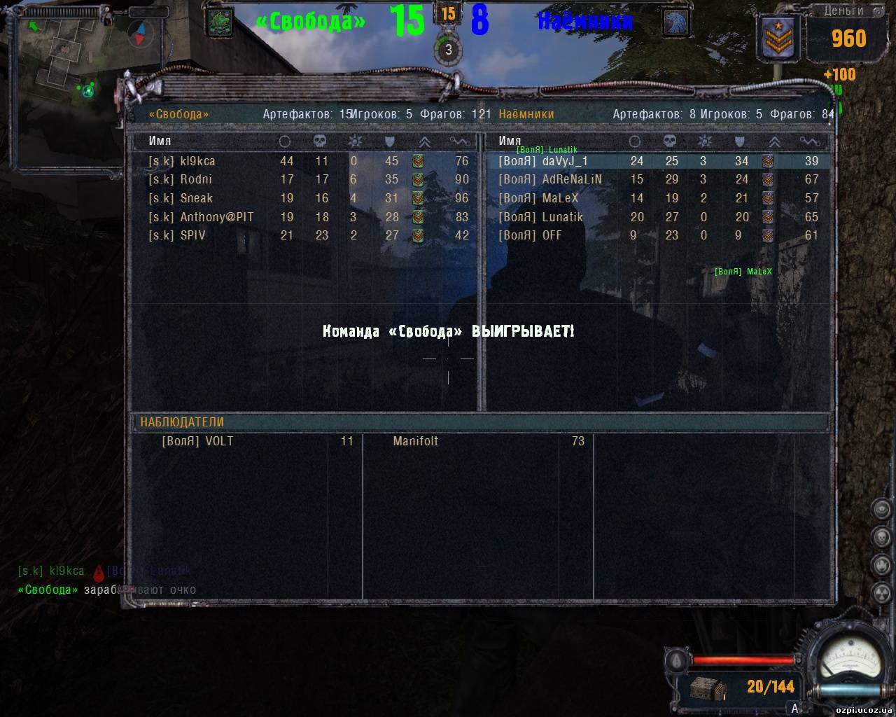 | Quote (|sk|kl9kca) Ну ето же воля...3,4,5...20ый раунд надо с играть... Можно =) Только что с вашими ребятами в ТДМ играли =) 2 на 2, жаль сервак потом начел лагать